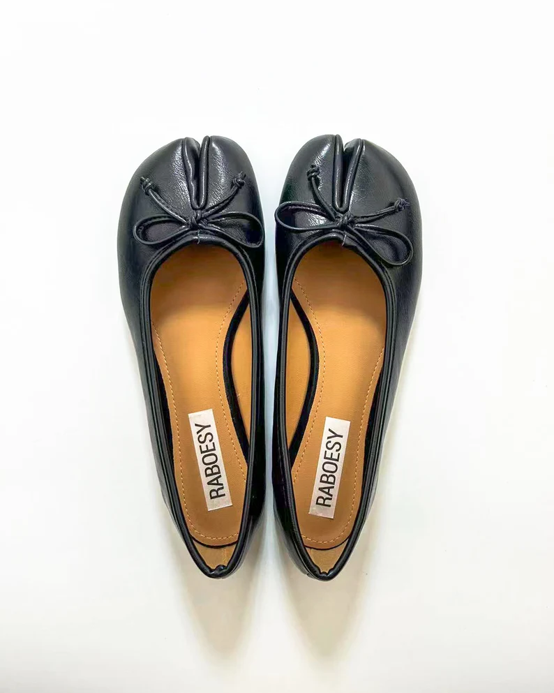 Women Retro Tabi Ballet Flats | Bow Tie Split Toe Shoes | Vintage Split Toe Tabis Shoes | Sliver Black White Red Tabi Flats